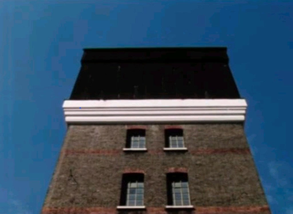 The ending is superb because it refuses any cheap rescue. The narrator finally approaches the tower itself. After all the glimpses and reappearances and impossible sightings, he reaches it, finds a door, opens it, and steps into darkness. That is one of the bleakest images in British short film because of how plainly it is handled. No grand revelation. No explanatory speech. No sudden solution. He just goes in.